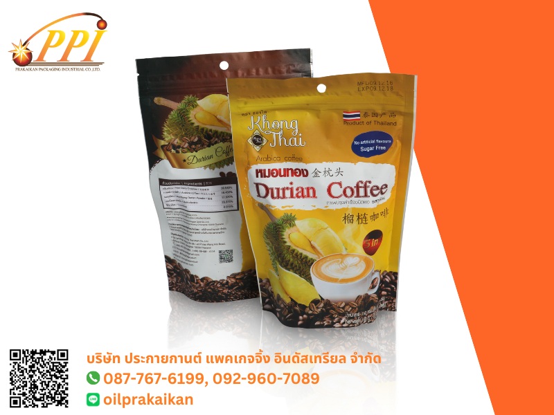 - รับผลิตถุงก้นตั้งติดซิป ถุงฐานตั้งได้พร้อมติดซิป นิยมใช้บรรจุอาหาร เช่น ซองกาแฟ ซองขนมอบกรอบ